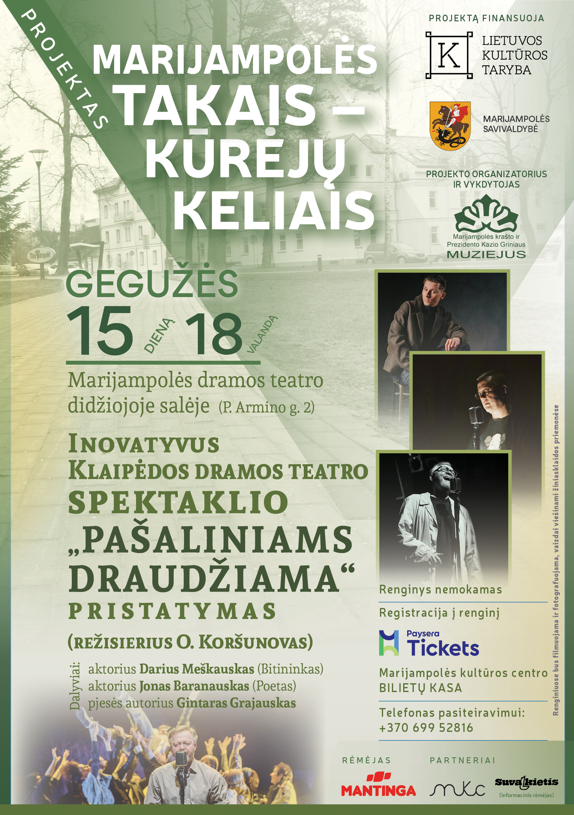 Gegužės 15 d. 18 val. Marijampolės dramos teatro didžiojoje salėje (P. Armino g. 2)