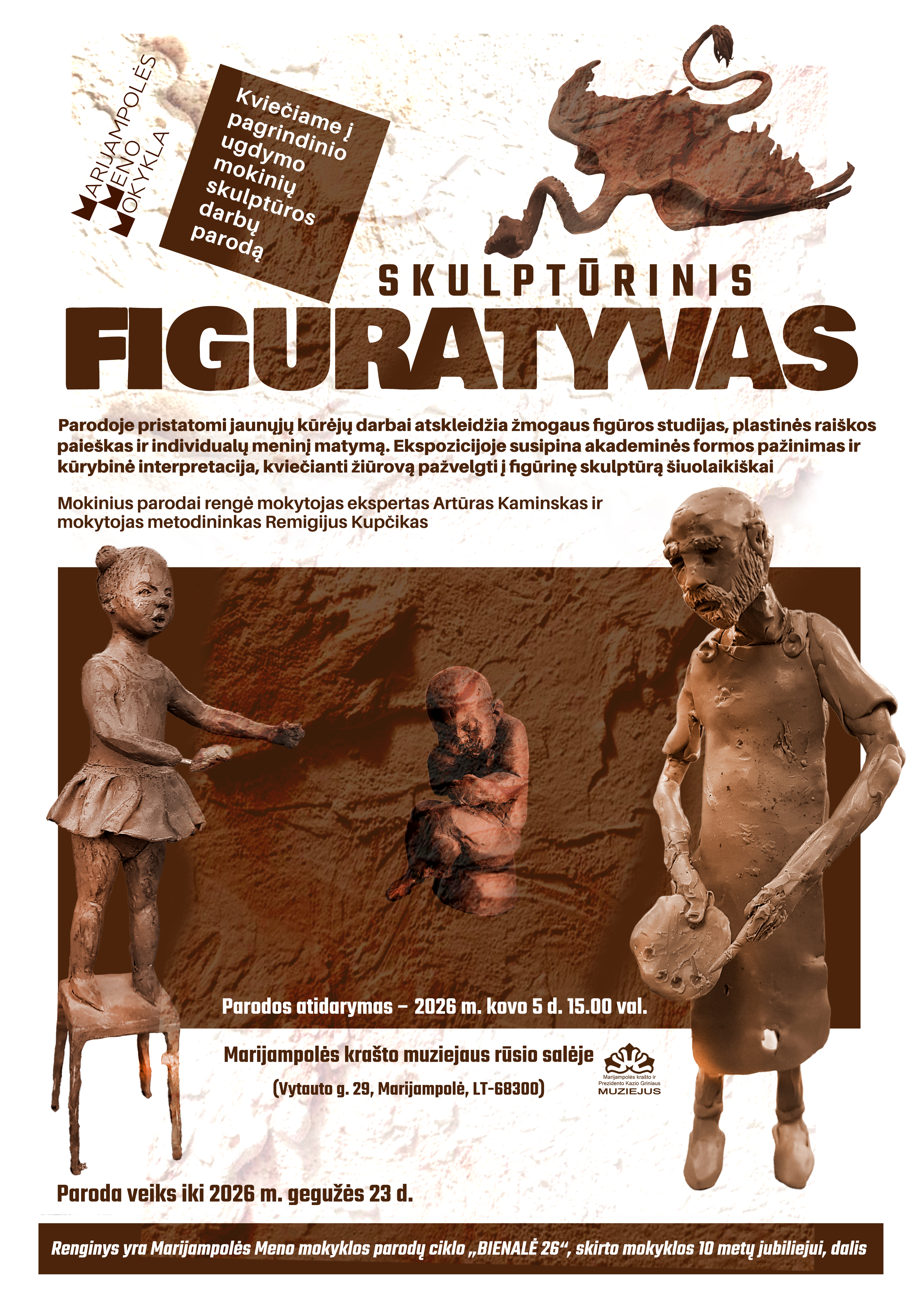 Kviečiame į Marijampolės meno mokyklos pagrindinio ugdymo mokinių skulptūros darbų parodą „Skulptūrinis figūratyvas“.
