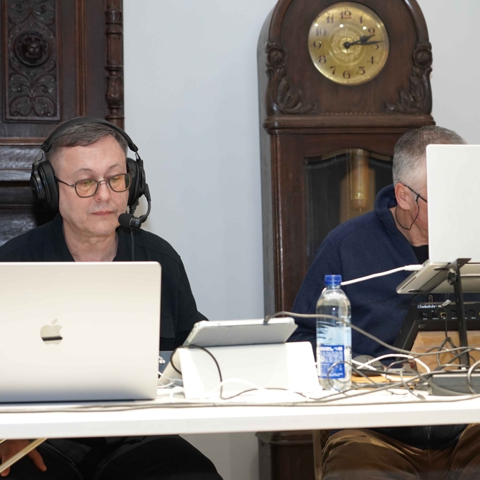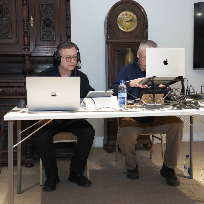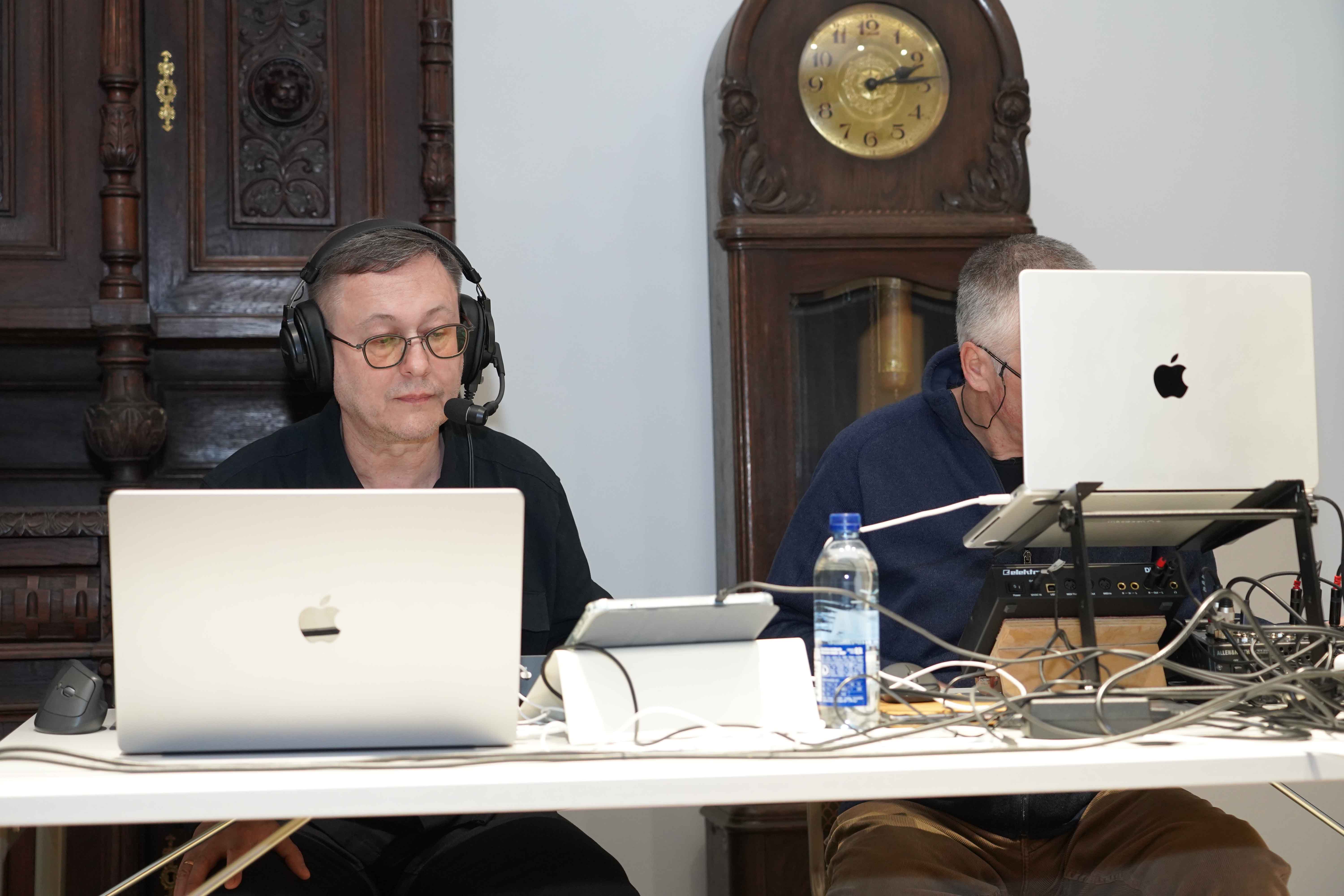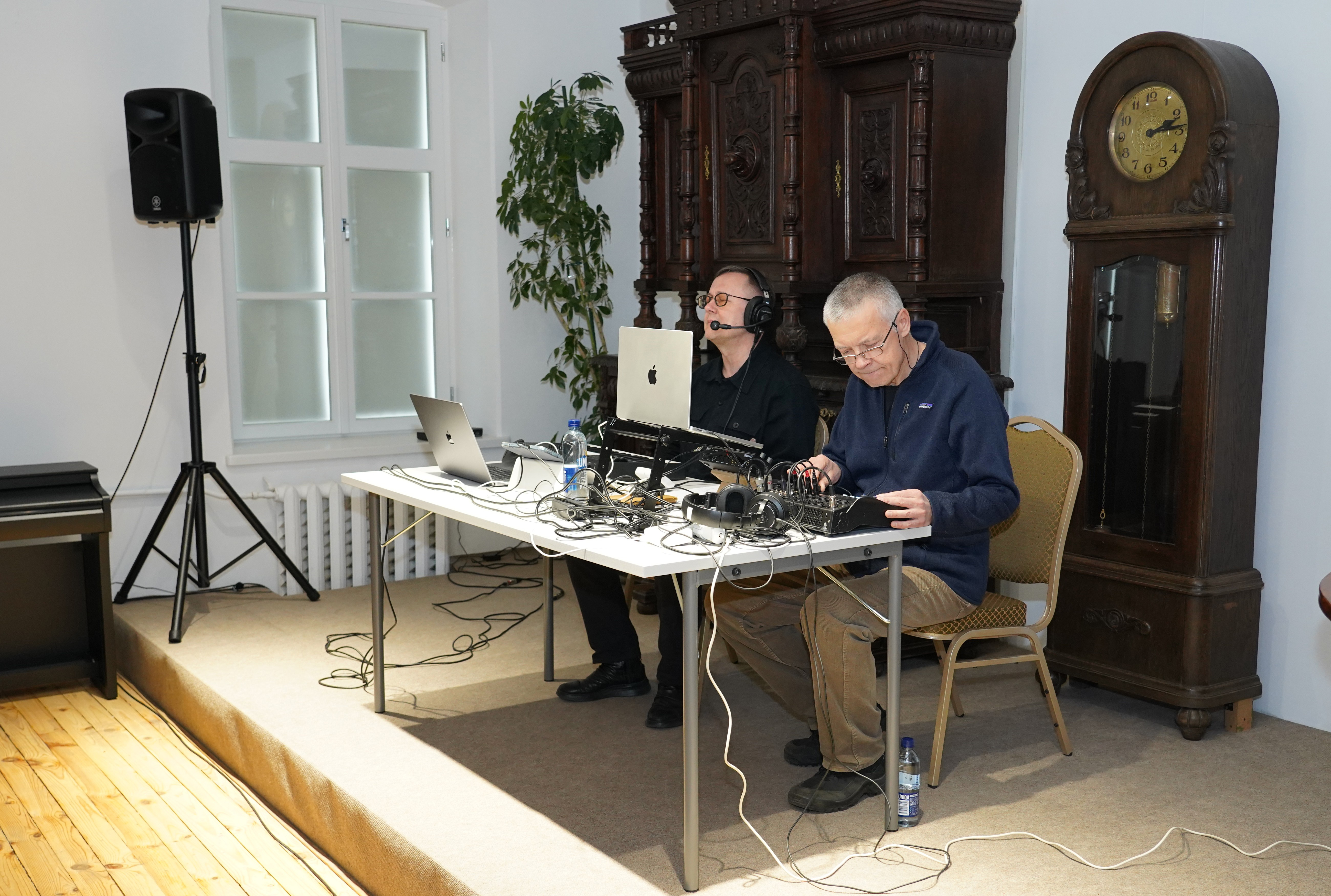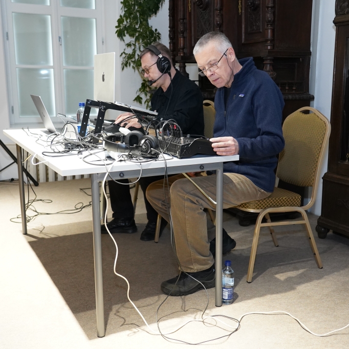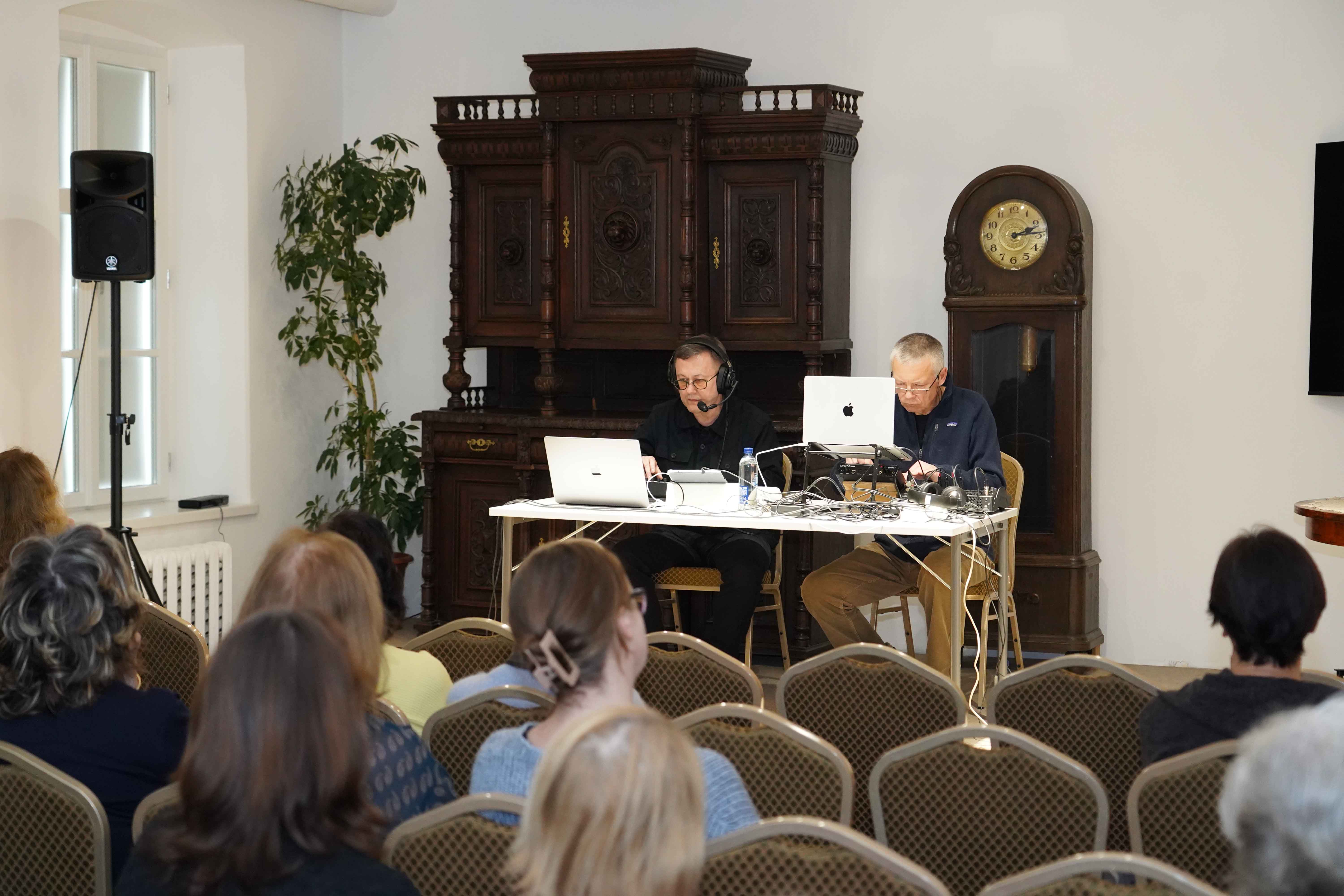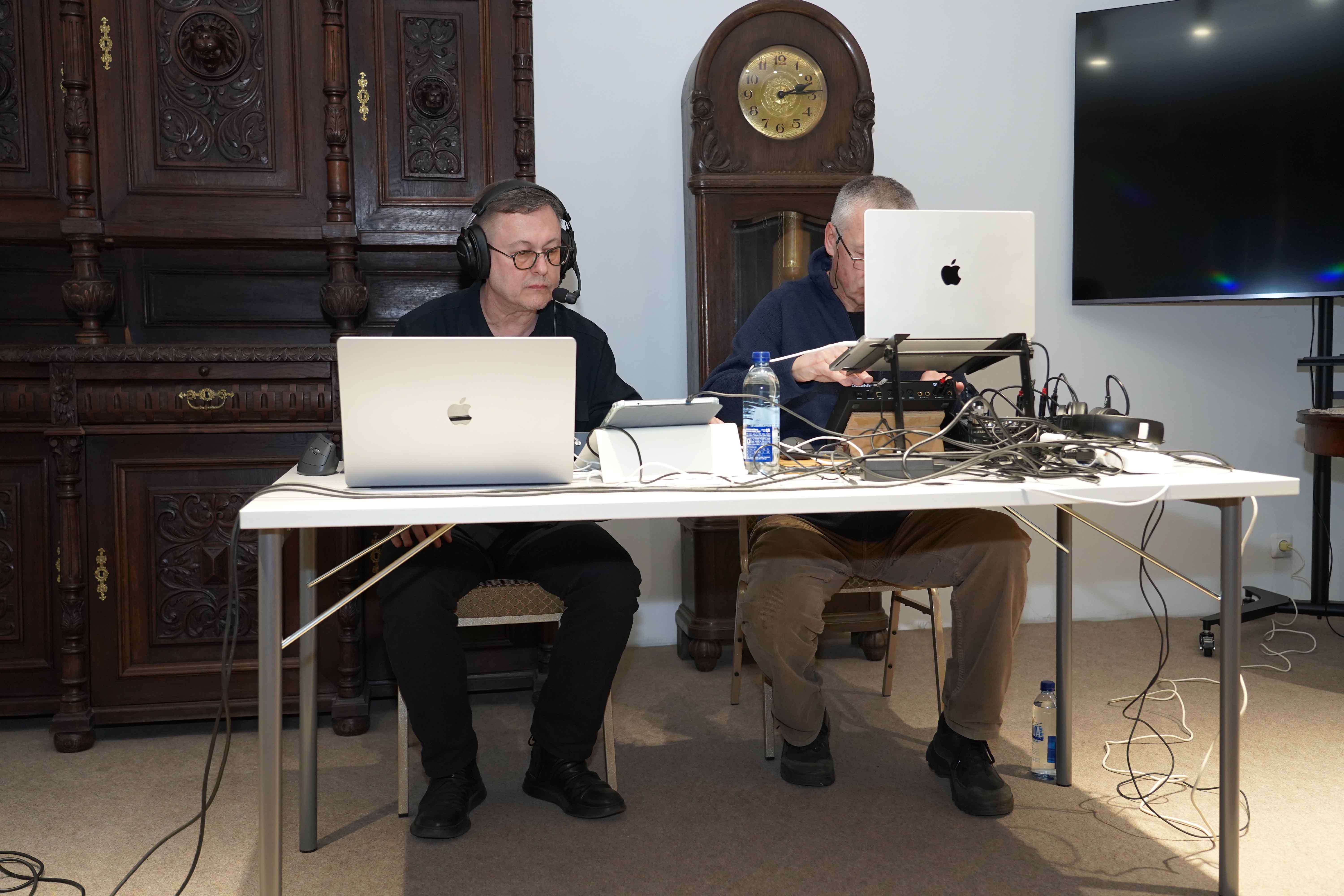 Nacionalinės premijos laureato, poeto, muzikanto, teatralo Gintaro Grajausko tekstai, muzika ir balsas Smėlio radijo eterio bangomis improvizuotai jungėsi, mainėsi su muzika ir balsu elektroninės muzikos kūrėjo, būgnais grojusio grupėse „Kontrabanda“, „Rokfeleriai“, Kęstučio Bublio.