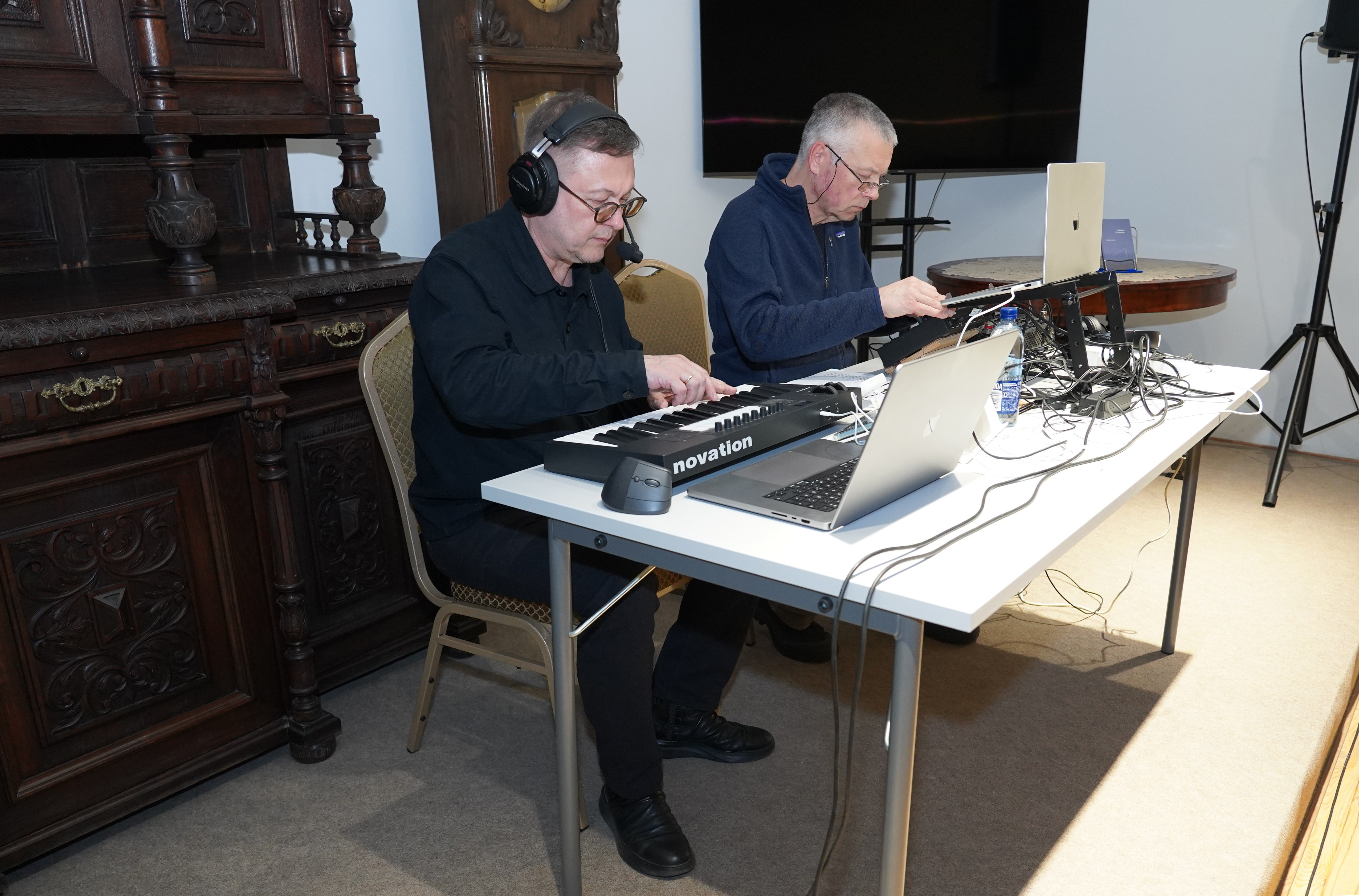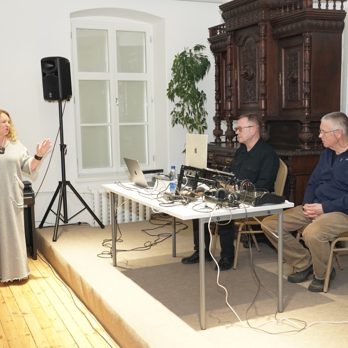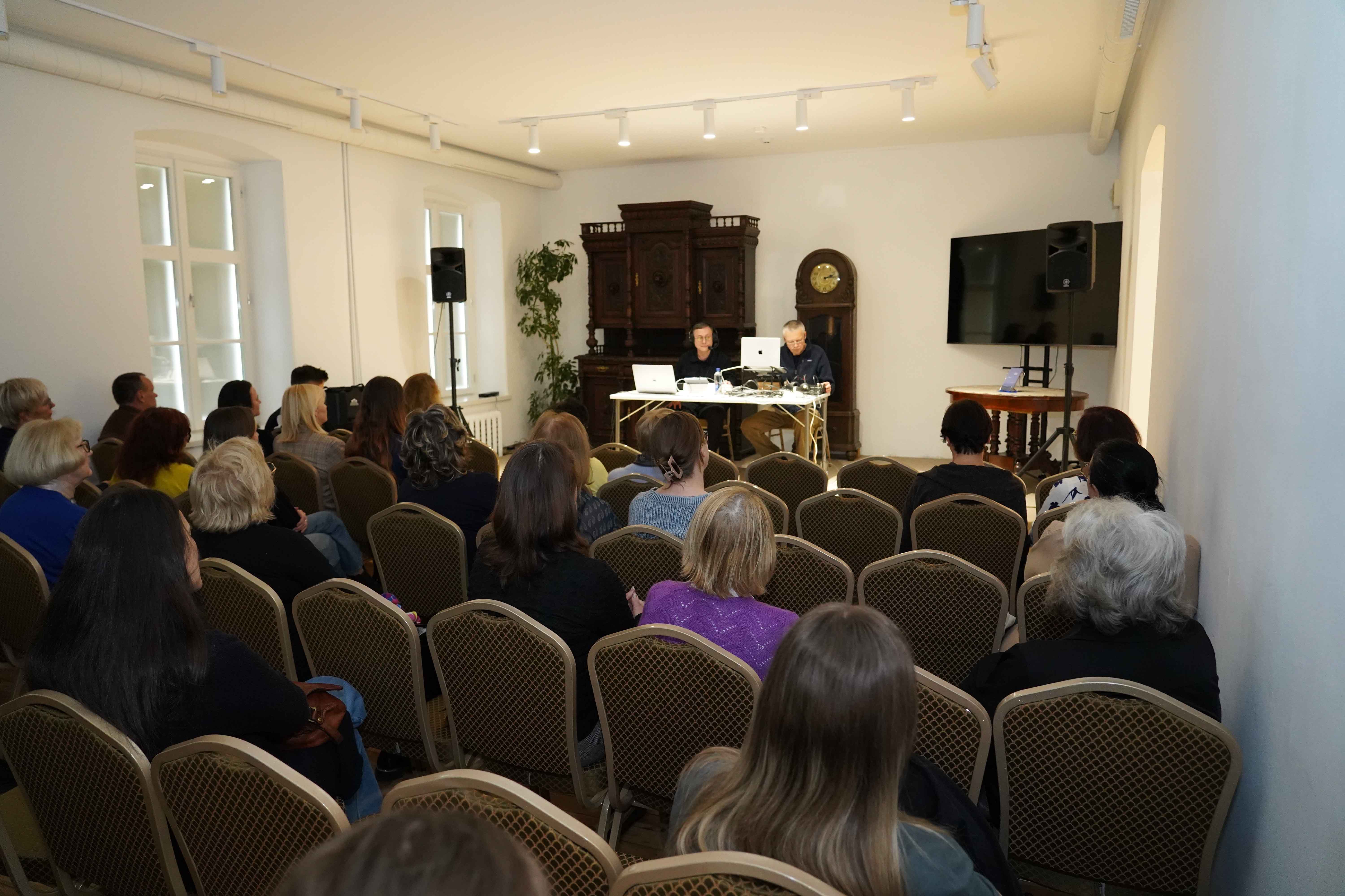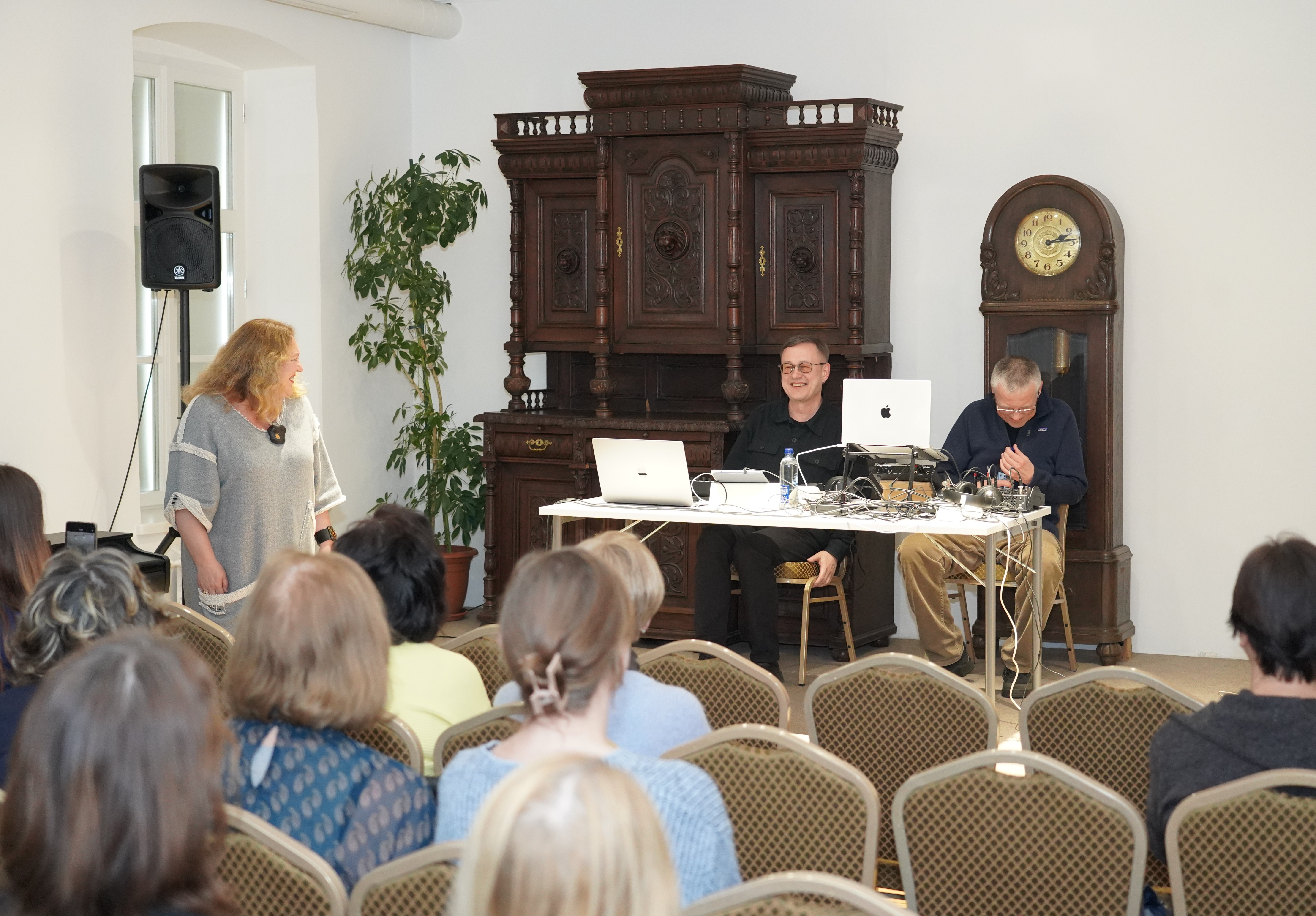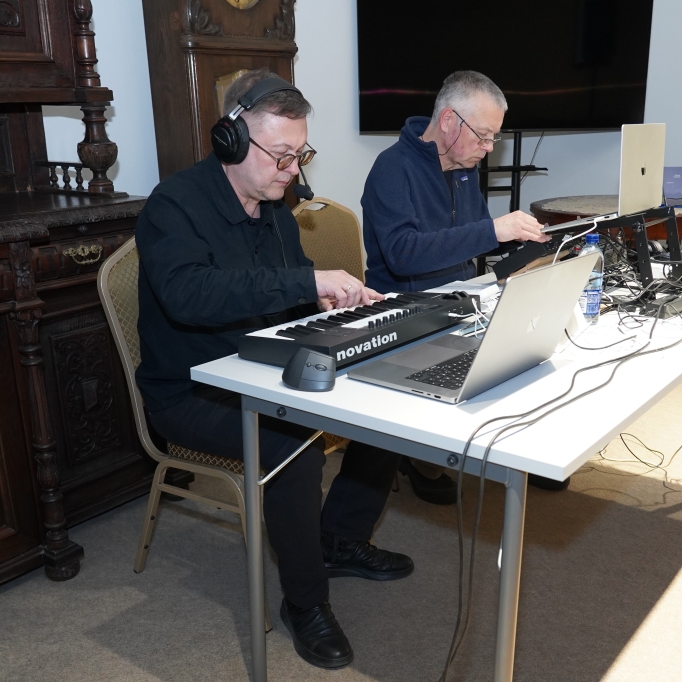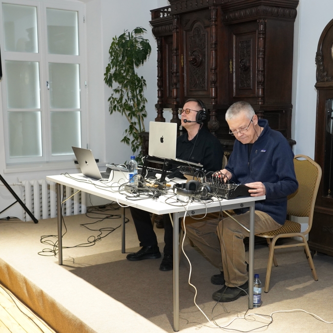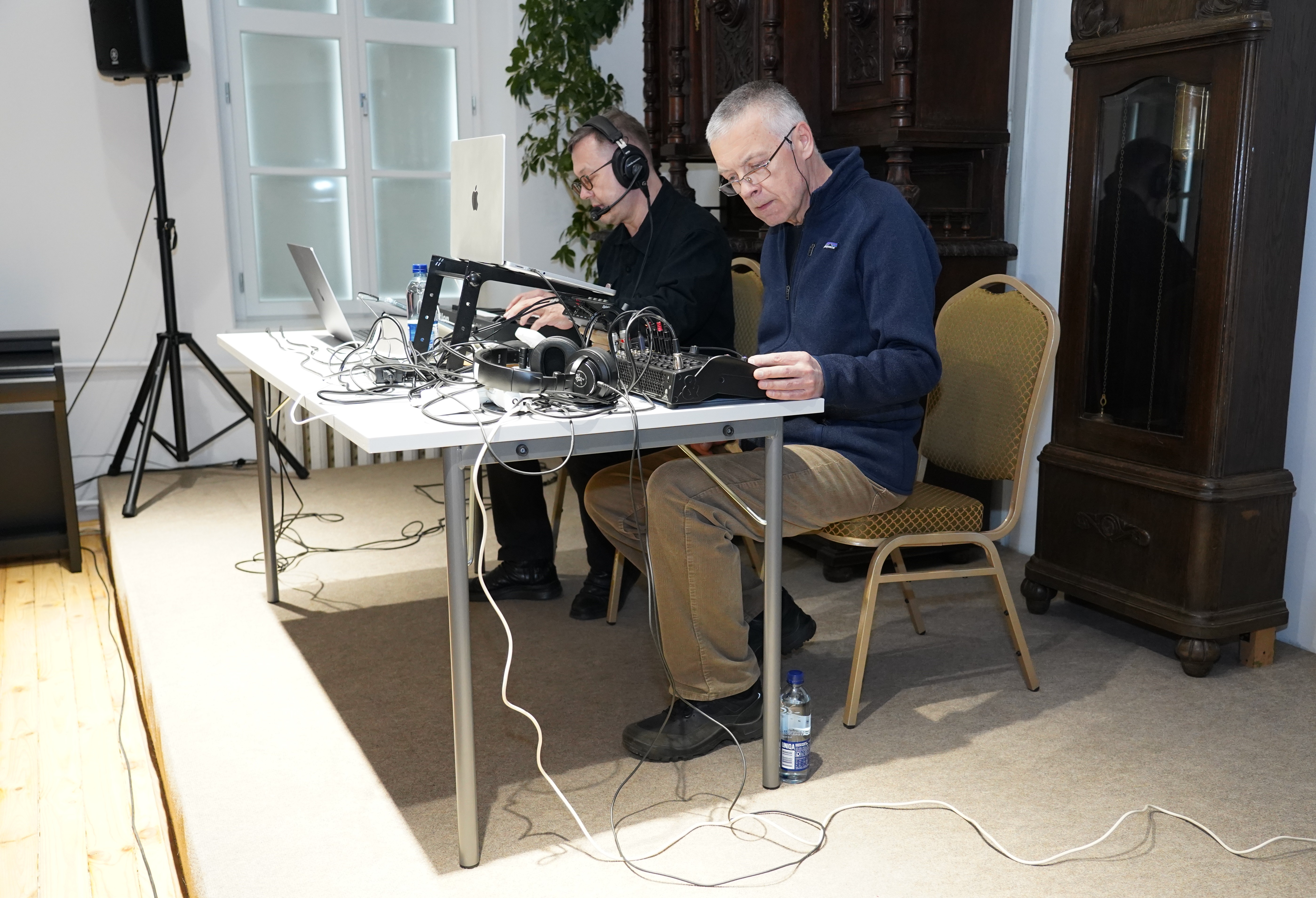Nacionalinės premijos laureato, poeto, muzikanto, teatralo Gintaro Grajausko tekstai, muzika ir balsas Smėlio radijo eterio bangomis improvizuotai jungėsi, mainėsi su muzika ir balsu elektroninės muzikos kūrėjo, būgnais grojusio grupėse „Kontrabanda“, „Rokfeleriai“, Kęstučio Bublio.