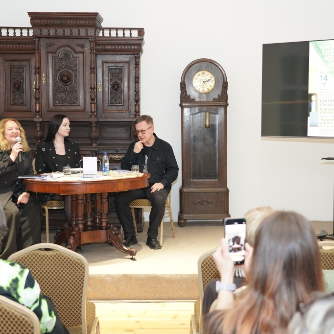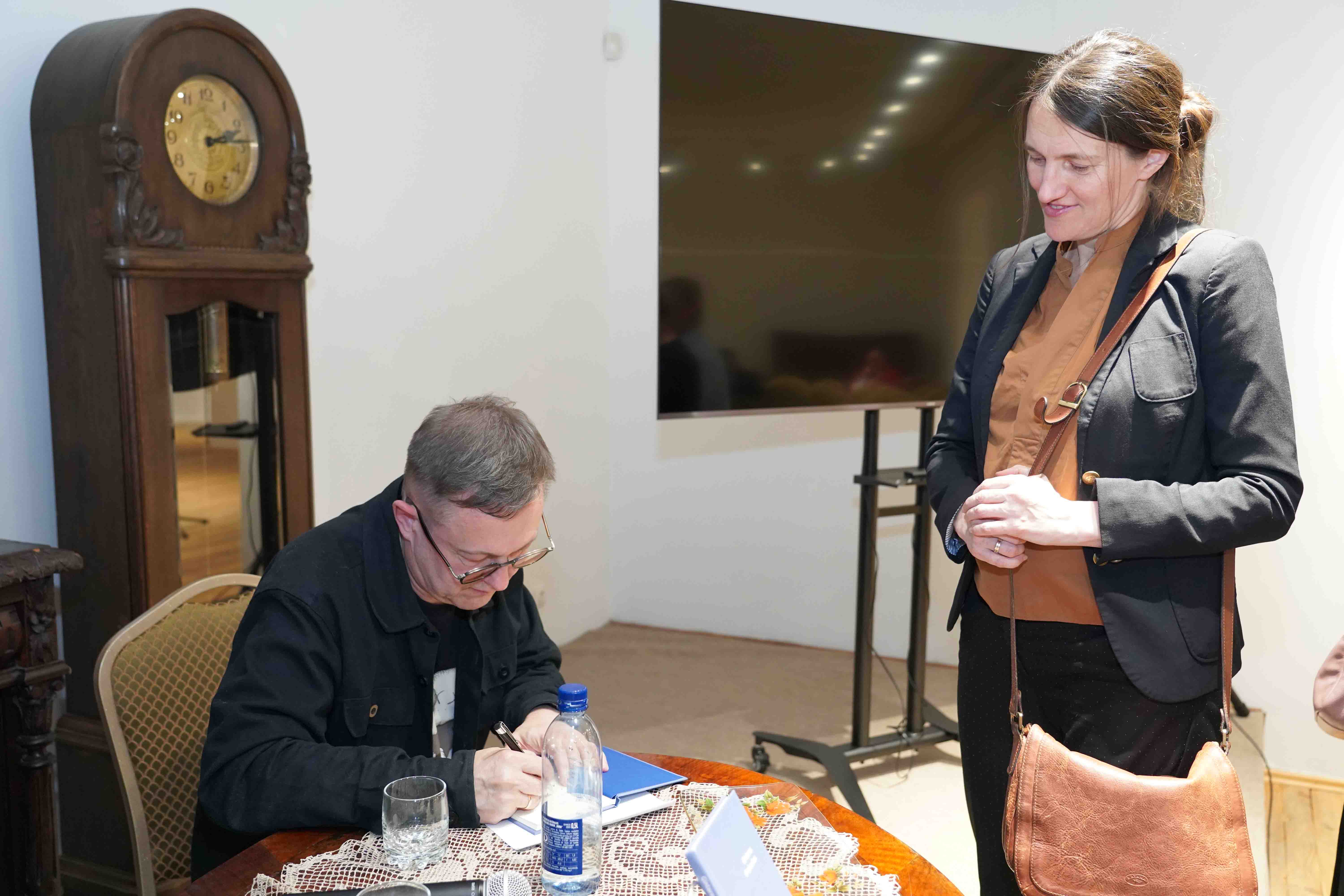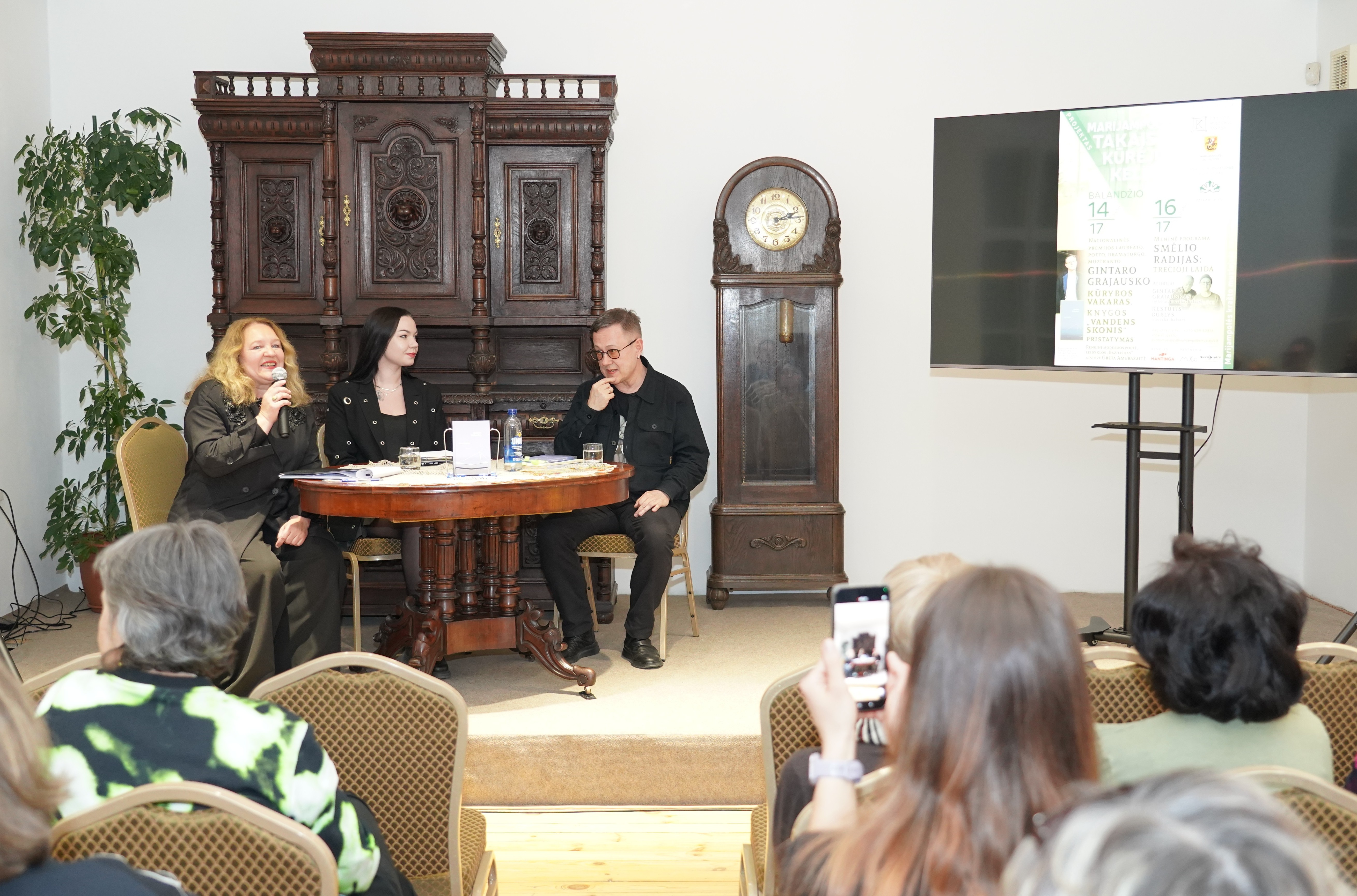 Profesionaliai poezijos knygą „Vandens skonis“ (Baziliskas, 2025) pristatė poetė, knygos dizainerė, leidyklos atstovė Greta Ambrazaitė. Moderatorė akcentavo Gintaro Grajausko kūrybos bruožus: eilėraščių siužetiškumą, konkretumą, tiesosaką, santykį su pačiu savimi, ironiškumą, nors šioje knygoje jos esą mažiausiai. Anot poeto, taip daroma sąmoningai, nes yra pavojus „užsižaisti“ ironija ir nutolti nuo tikrosios poezijos esmės, kurios kaip išskirtinę savastį nurodė prigimtinę suvalkiečių tarmę. Greta Ambrazaitė skatino kalbėti ir apie visais laikais aktualią rašytojo – laisvės saugotojo – poziciją (jai nesuvaidintai atstovauja ir G. Grajauskas) bei rašytojo žodžio galią šiuolaikinėje visuomenėje.