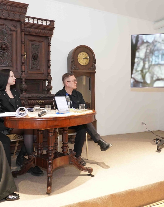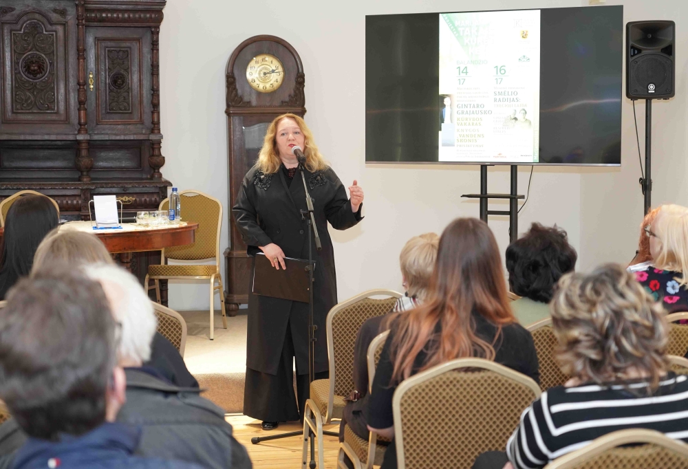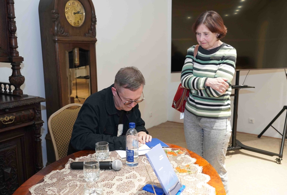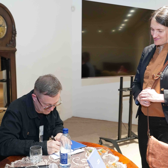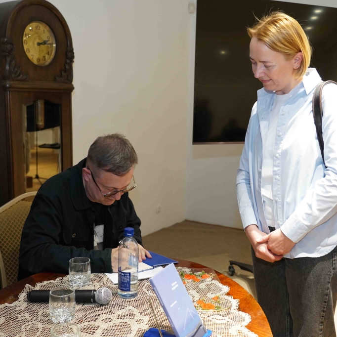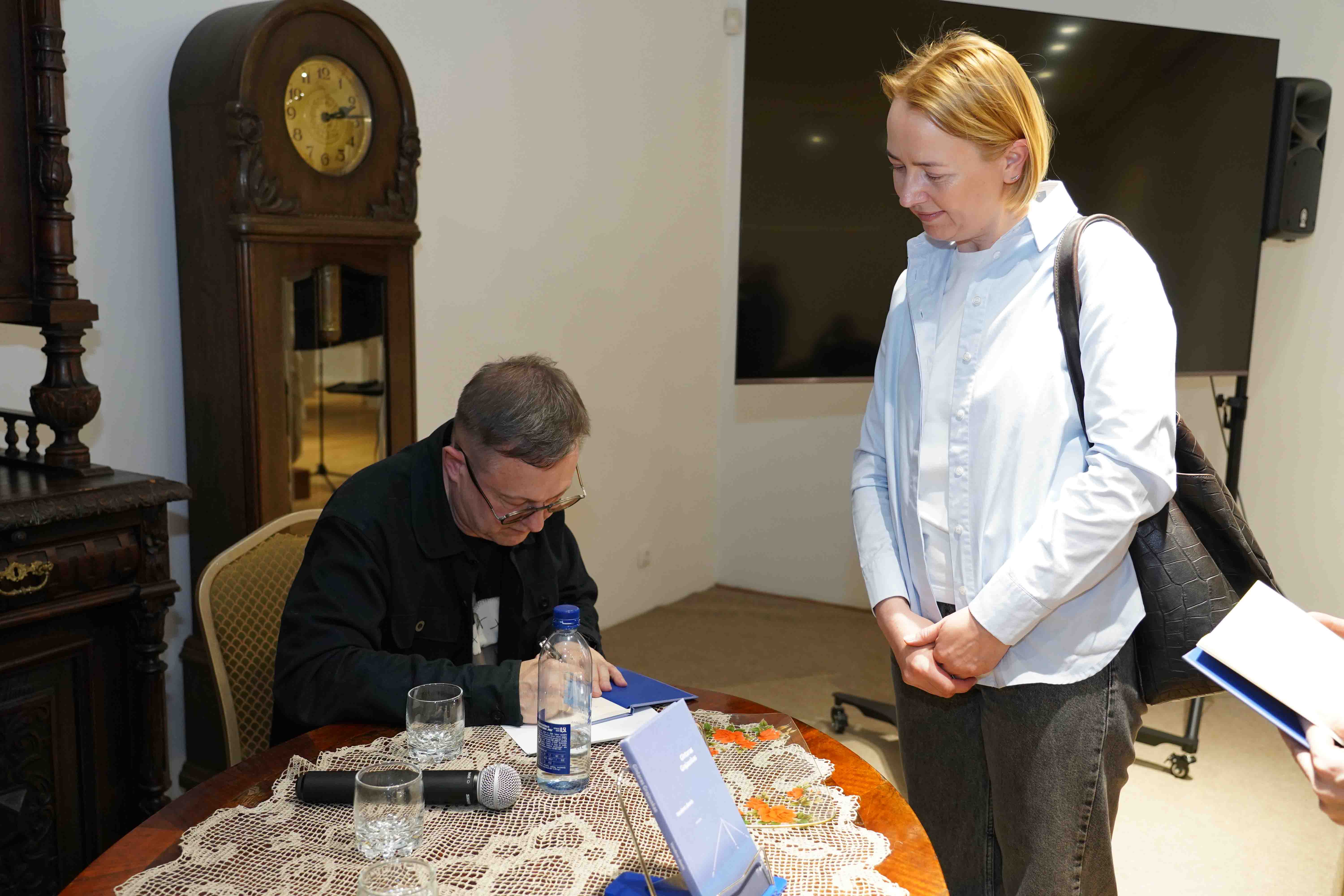 Profesionaliai poezijos knygą „Vandens skonis“ (Baziliskas, 2025) pristatė poetė, knygos dizainerė, leidyklos atstovė Greta Ambrazaitė. Moderatorė akcentavo Gintaro Grajausko kūrybos bruožus: eilėraščių siužetiškumą, konkretumą, tiesosaką, santykį su pačiu savimi, ironiškumą, nors šioje knygoje jos esą mažiausiai. Anot poeto, taip daroma sąmoningai, nes yra pavojus „užsižaisti“ ironija ir nutolti nuo tikrosios poezijos esmės, kurios kaip išskirtinę savastį nurodė prigimtinę suvalkiečių tarmę. Greta Ambrazaitė skatino kalbėti ir apie visais laikais aktualią rašytojo – laisvės saugotojo – poziciją (jai nesuvaidintai atstovauja ir G. Grajauskas) bei rašytojo žodžio galią šiuolaikinėje visuomenėje.