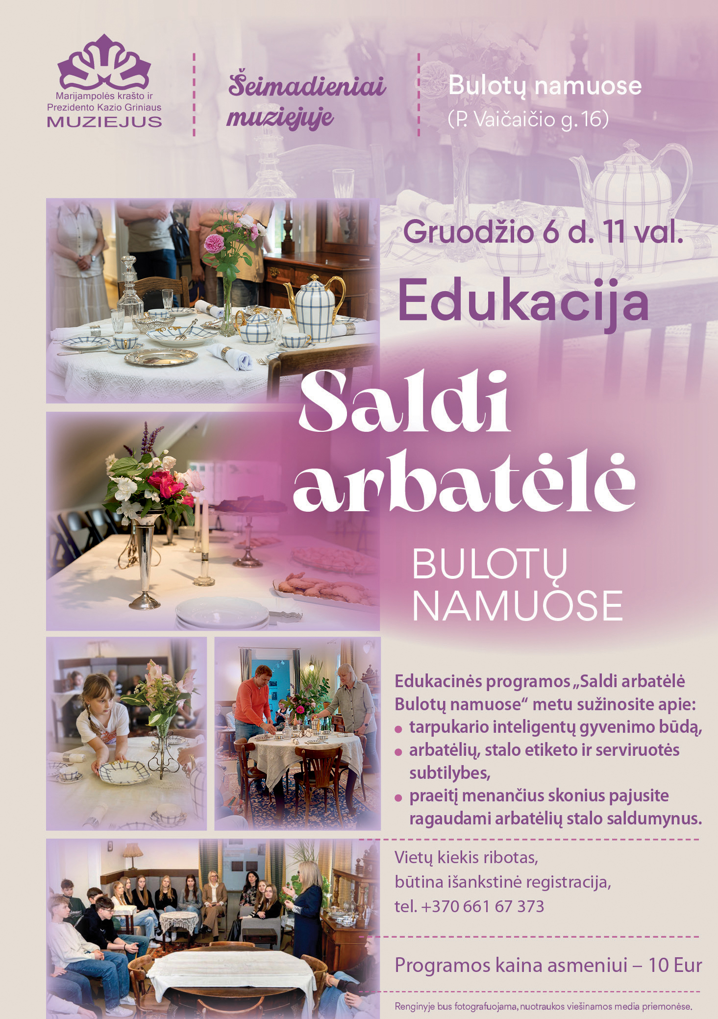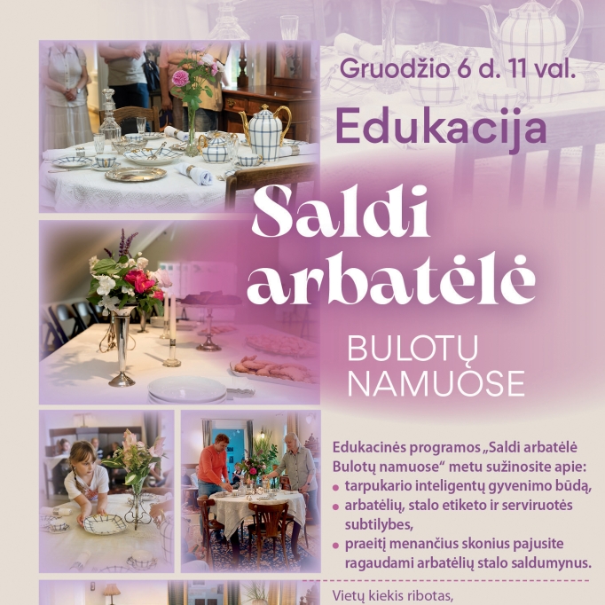 Kviečiame į renginį, kurio metu patirsite tarpukario dvasią! Čia gyveno vienas žymiausių advokatų Lietuvoje Andrius Bulota su žmona Aleksandra. Šiuose namuose virė inteligentiškas gyvenimas su tarpukario miestietiškai kultūrai būdingomis pramogomis – labdaringais vakarais, pobūviais ir „faifokliokais“ (penktos valandos arbatėlėmis).